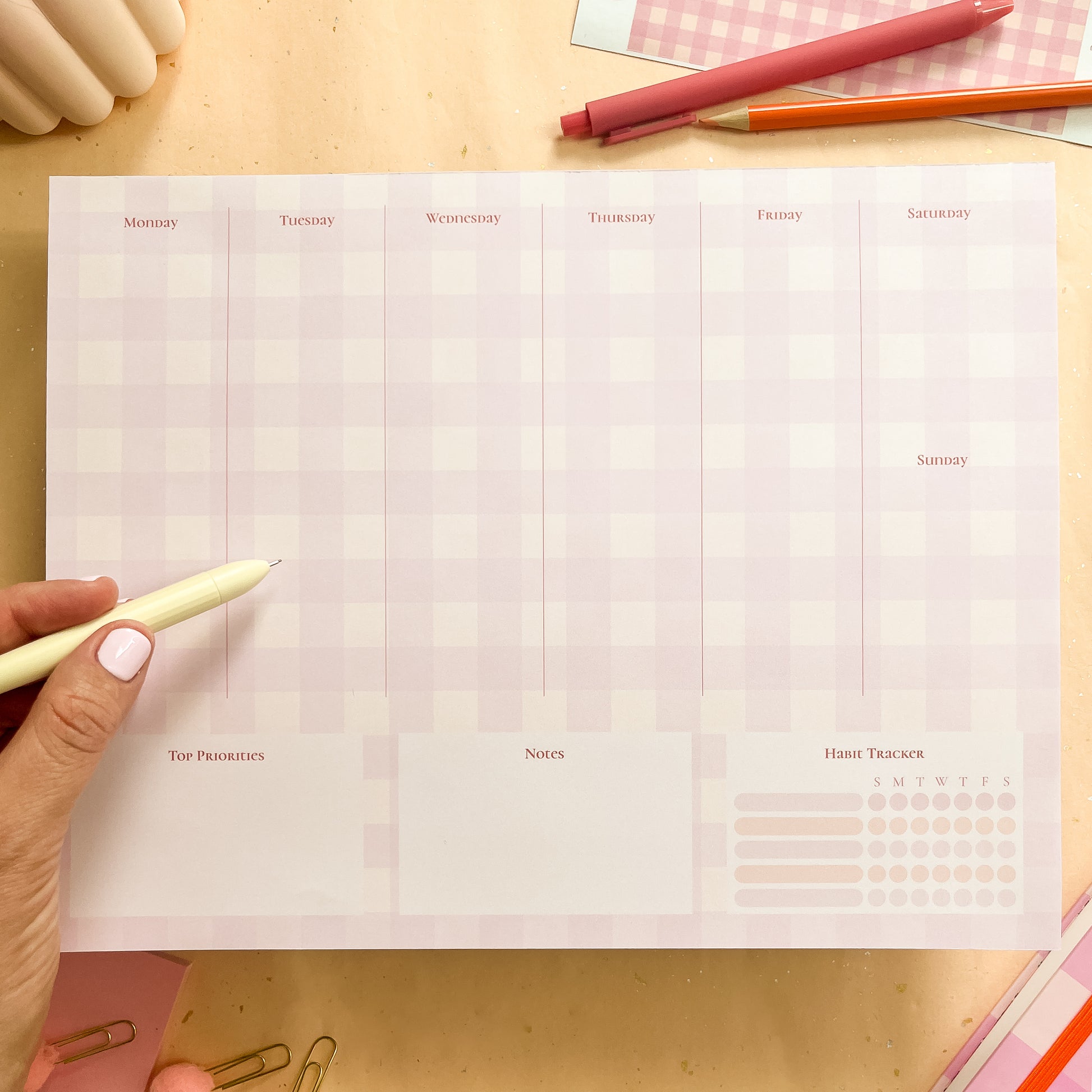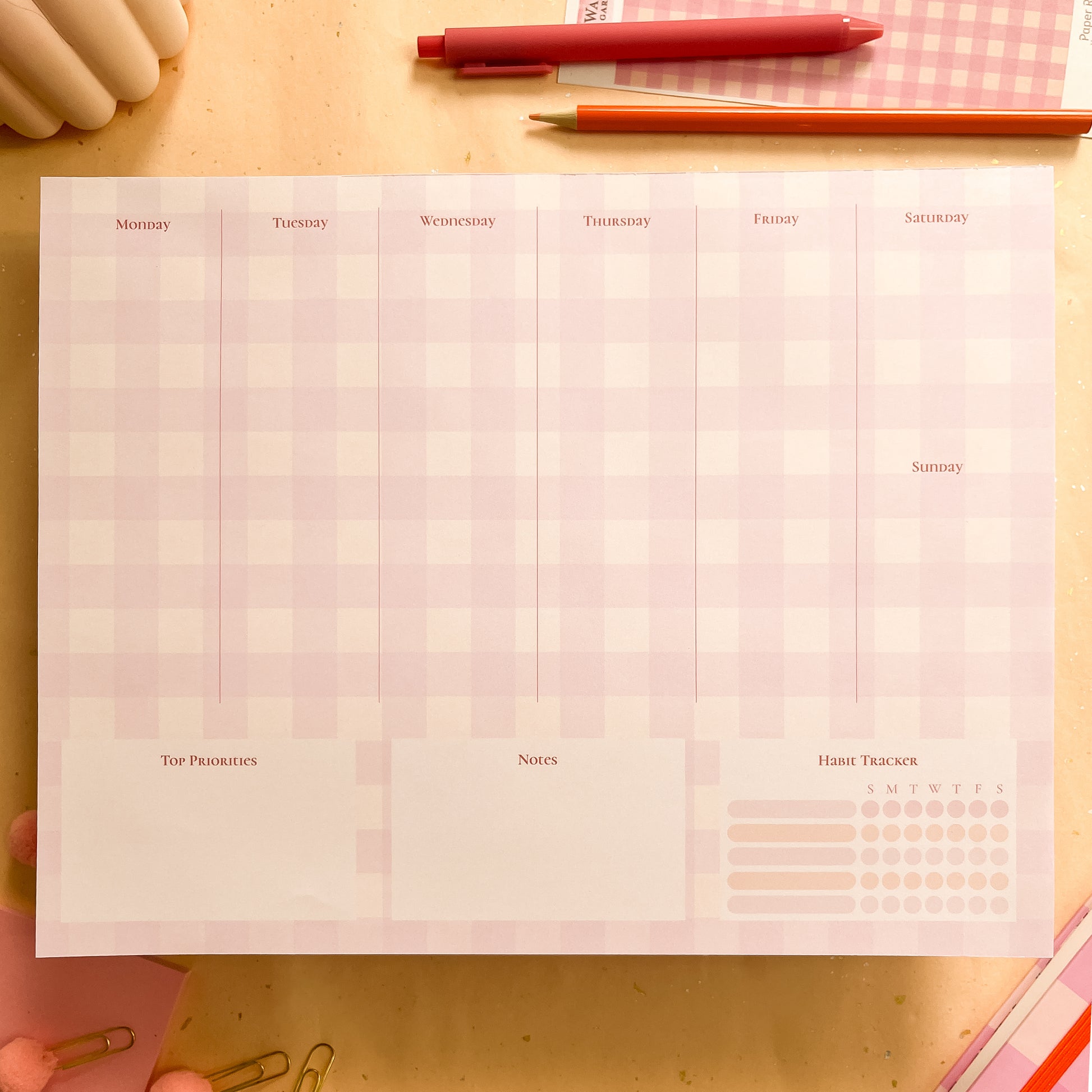 Berry Gingham Weekly Planner Notepad - letter size