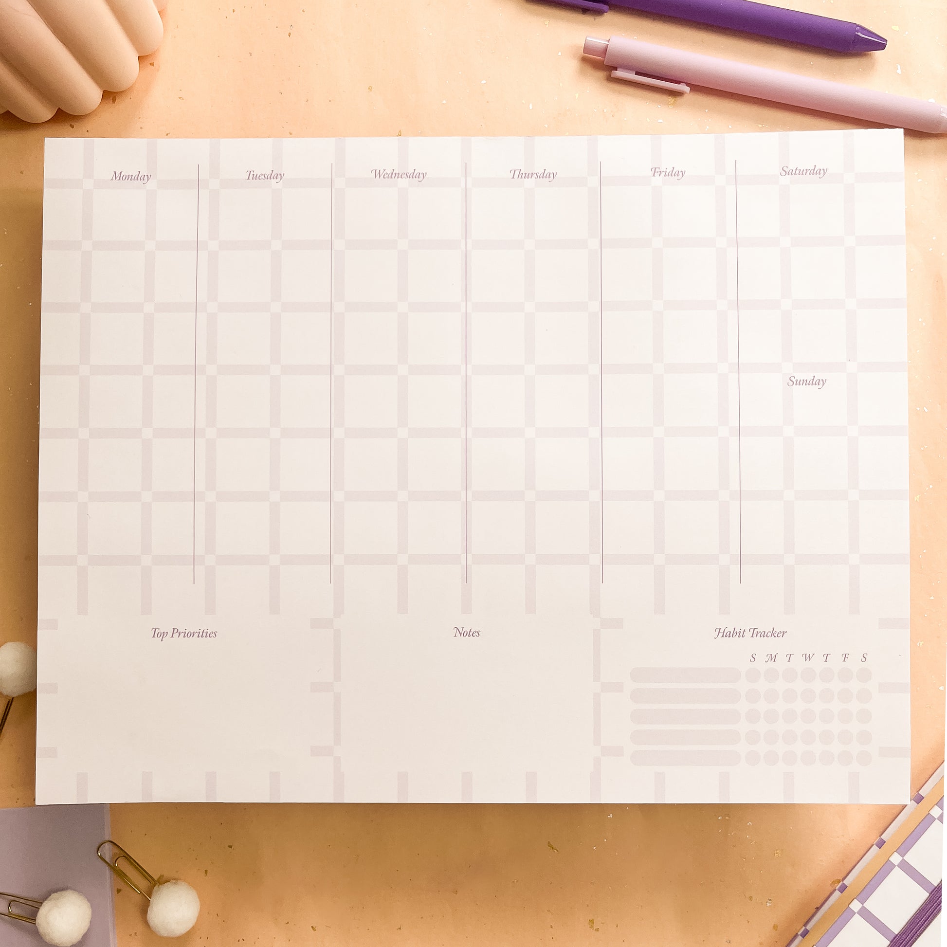 Orchid Grid Weekly Planner Notepad - letter size